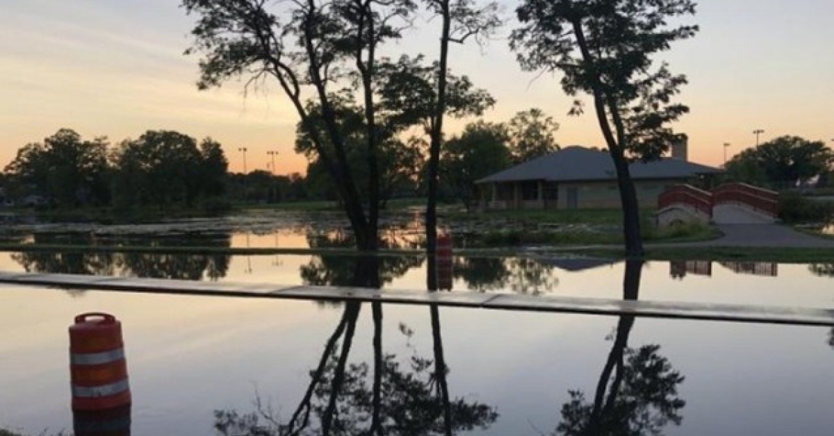 Flood waters over the road in near Tenney Park in Madison